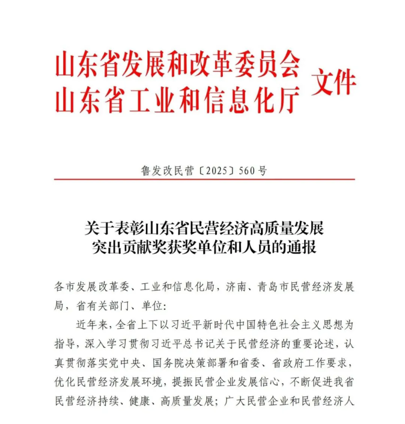 为表彰先进、树立典型,在全社会营造鼓励、支持、引导民营经济发展的浓厚氛围,进一步激发民营企业发展活力,提振民营企业发展信心,推动全省民营经济高质量发展再上新台阶,经省委、省政府批准,省发展改革委、省工业和信息化厅于上半年在全省范围内组织开展了山东省民营经济高质量发展突出贡献奖评选活动。