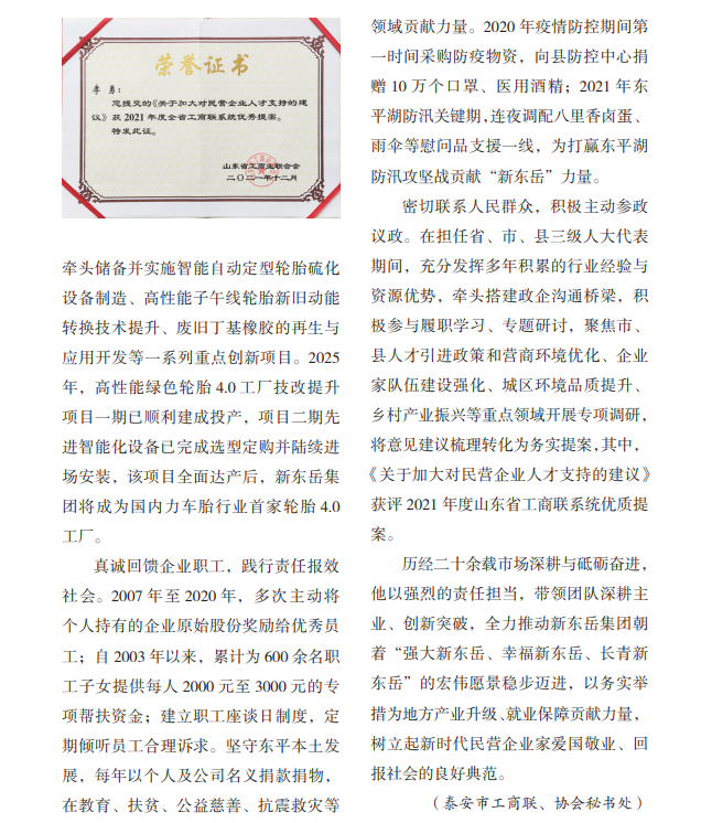 您现在的位置: 山东省民营企业家协会网站>>新闻信息>>正文 李勇:履职尽责守初心 奋楫笃行谱华章 李勇:履职尽责守初心 奋楫笃行谱华章 时间:2025/11/26 0:00:00编辑:admin来源:山东省民营企业家协会点击:1