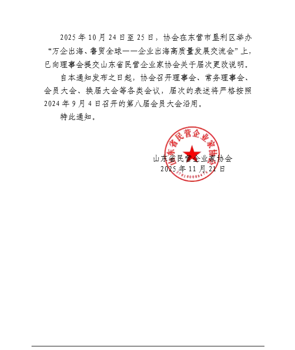 您现在的位置: 山东省民营企业家协会网站>>新闻信息>>正文 2025年13号发文-协会届次更改通知 2025年13号发文-协会届次更改通知 时间:2025/12/23 0:00:00编辑:admin来源:山东省民营企业家协会点击:1